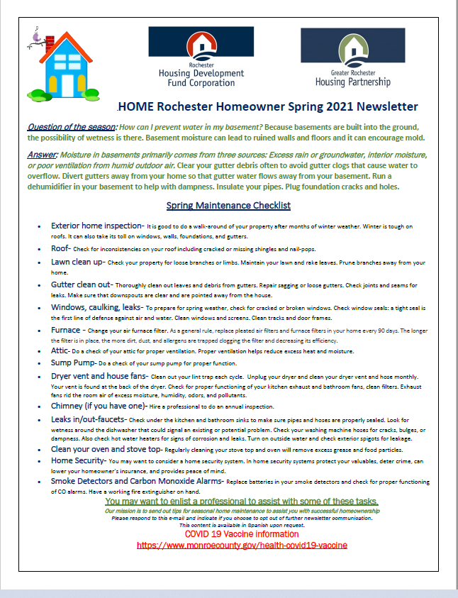 Spring/Summer, Fall and Winter we provide a seasonal newsletter via e-mail with seasonal home maintenance tips to lead you into successful home ownership.